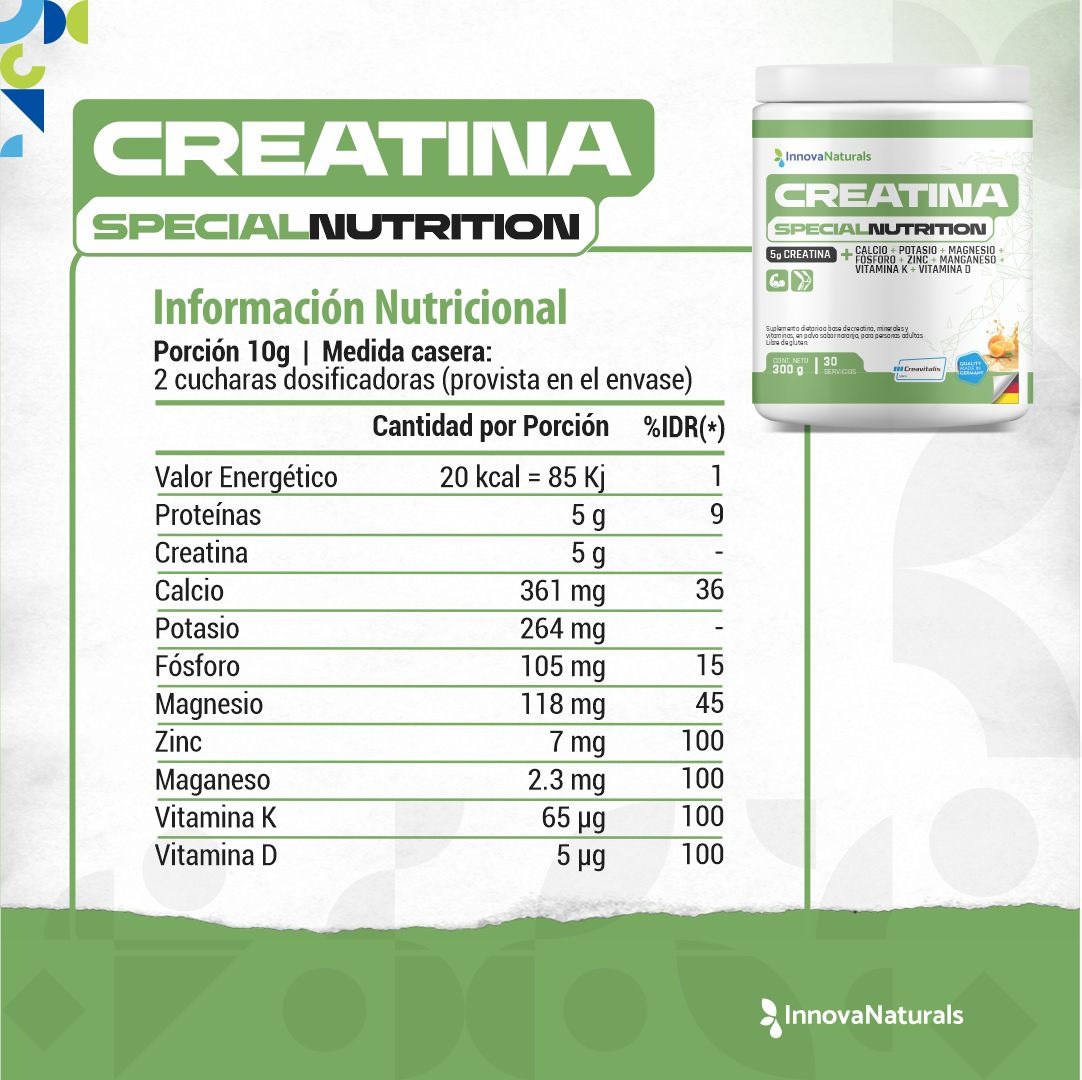 CREATINA SPECIAL NUTRITION, una combinación pensada exclusivamente para mejorar la RESISTENCIA , fuerza muscular; aumentar las defensas, mejorar el sistema inmune; la memoria, el cerebro; mejorar la circulación, el sistema cardiovascular y la salud ósea. Más ENERGÍA.