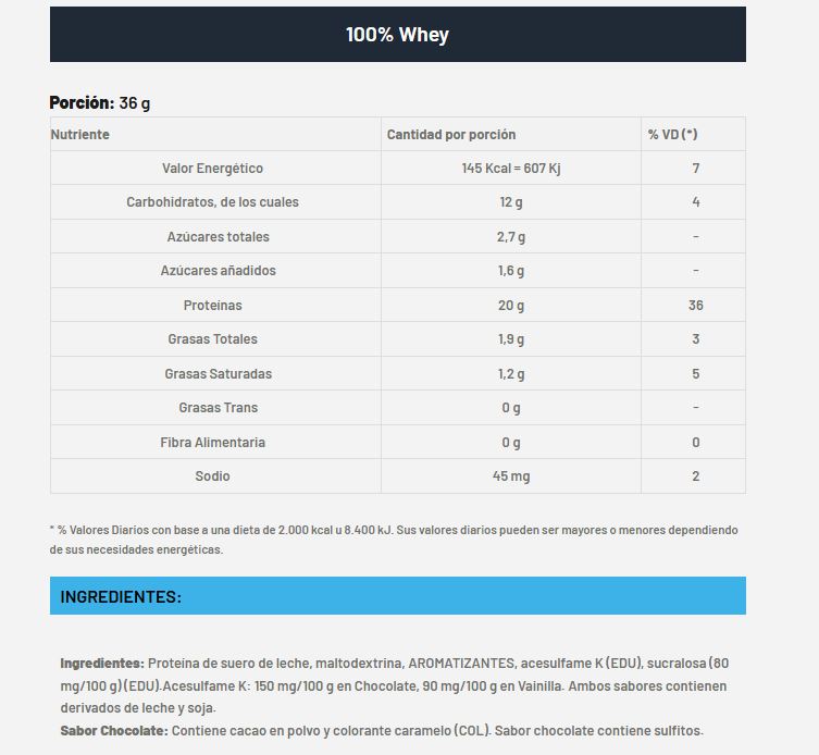 La suplementación con proteínas de suero (Whey protein) es ideal para complementar tus desayunos, tus meriendas y tu snack recovery post entreno. Los 20 gs de proteínas por porción de 100% WHEY la posicionan como una gran opción para toda la población fisicamente activa, tanto hombres como mujeres. La calidad de 100% WHEY es ideal para favorecer la síntesis de masa muscular, ya que es rica en aminoácidos ramificados conocidos como BCAA.